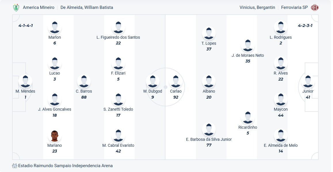 Ferroviaria chỉ là đội bóng mới thăng hạng lên đá ở Serie B mùa này sau khi đứng thứ 3 tại Serie C mùa trước. Rõ ràng với những gì mà HLV Vinícius Bergantin đang có trong tay thì đội bóng của ông chỉ đặt mục tiêu trụ hạng lên đầu. So với mục tiêu đó thì vị trí thứ 13 như hiện tại là chấp nhận được, họ chỉ để thua 2/6 vòng gần nhất nên vẫn giữ được vị trí an toàn. Các cầu thủ Ferroviaria muốn có một kết quả tốt ở vòng 11 này để không bị tụt xuống quá sâu trên bảng xếp hạng, tuy nhiên đối thủ America Mineiro đang rất cần chiến thắng nên xem ra cơ hội có điểm của Ferroviaria là không cao.