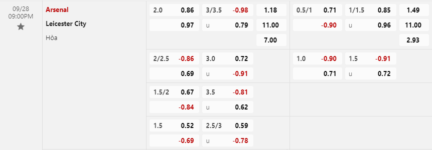 Soi kèo châu Á Arsenal vs Leicester City
