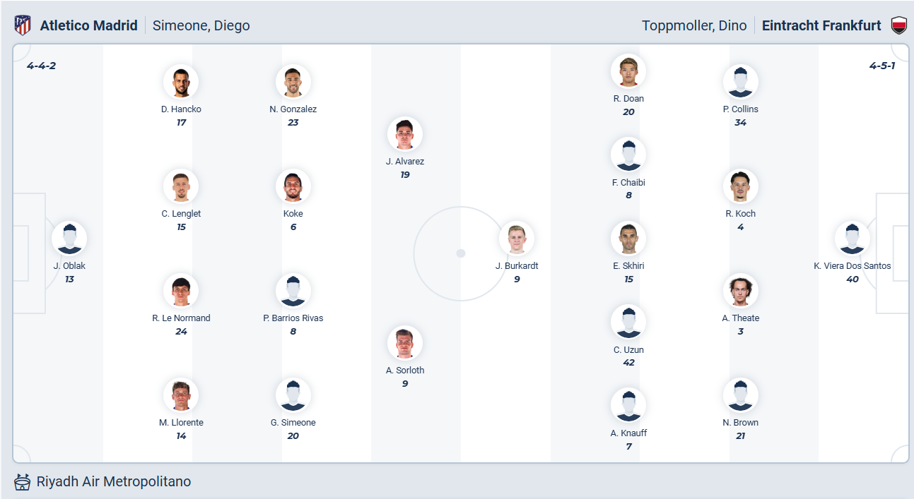 Lượt trận thứ 2 League Phase Champions League, Atletico Madrid sẽ tiếp Frankfurt trên sân nhà với mục tiêu giành chiến thắng để có điểm số đầu tiên. Đây không phải trận đấu dễ dàng và đội chủ nhà cần tận dụng tốt các cơ hội của mình.
