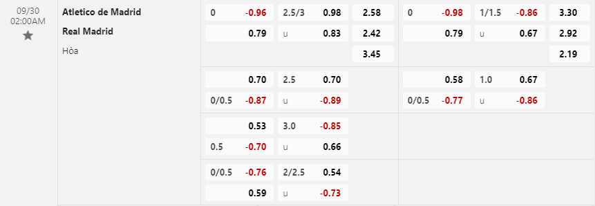 Soi kèo châu Á Atletico Madrid vs Real Madrid