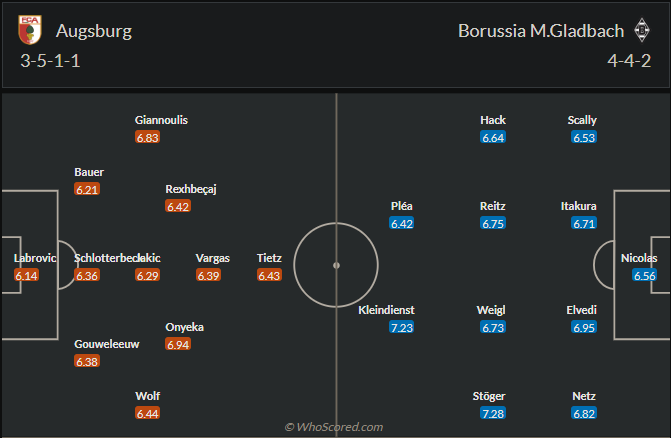 Augsburg mới có 1 chiến thắng sau 5 vòng đấu, họ đang đứng thứ 15 với 4 điểm trong tay. Mùa trước họ kết thúc ở vị trí thứ 11, vị trí ổn với một đội bóng chỉ đặt mục tiêu trụ hạng. Mùa năm nay thầy trò HLV Jess Thorup dự đoán sẽ khó khăn hơn, họ cần chơi tốt hơn nếu muốn ở lại Bundesliga mùa tới. Chính vì vậy Augsburg đặt mục tiêu giành chiến thắng trước Gladbach ở vòng đấu thứ 6 này. Tuy nhiên trước đối thủ có phong độ ổn định hơn thì nhiều khả năng đội bóng chủ nhà sẽ chỉ có được một kết quả hòa.