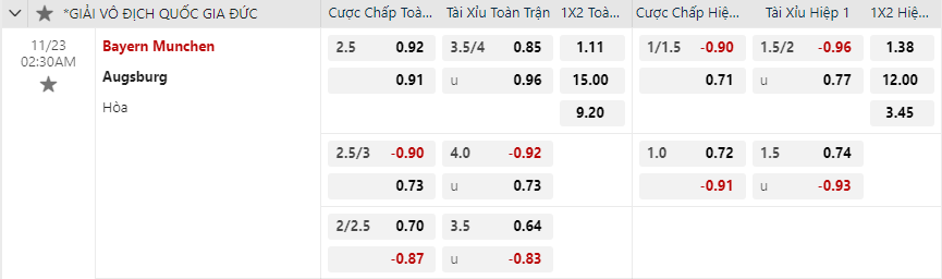 Soi kèo châu Á Bayern Munich vs Augsburg: 0.90*2.75*0.73