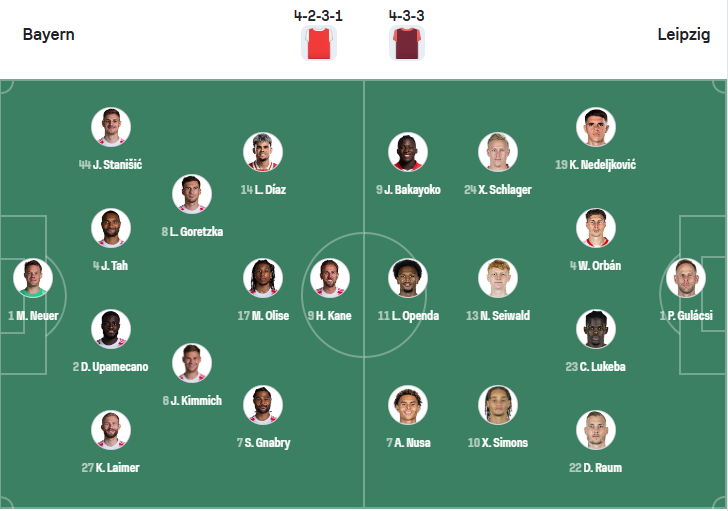 Bayern đã giành lại chức vô địch Bundesliga mùa trước và đương nhiên họ muốn lặp lại điều đó ở mùa giải này, đây không phải điều quá khó thực hiện nếu đội bóng của HLV Vincent Kompany chơi đúng với khả năng của mình và điều họ cần làm ở vòng đấu đầu tiên là thể hiện đúng khả năng đó. Chiến thắng là điều cần thiết khi đón tiếp Leipzig trên sân nhà, trước đối thủ yếu hơn nhiều và có nhiều xáo trộn về lực lượng thì khả năng Bayern sẽ không gặp nhiều khó khăn để có 3 điểm trọn vẹn.
