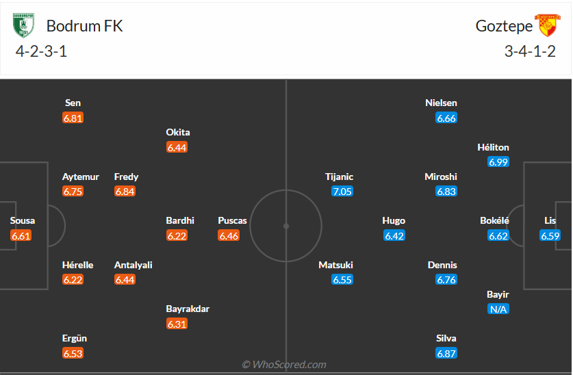 Goztepe cũng là đội bóng mới lên hạng như Bodrum nhưng họ chơi tốt hơn đối thủ nhiều, các cầu thủ của HLV Stanimir Stoilov đang đứng thứ 6 trên bảng xếp hạng và hoàn toàn có thể nghĩ đến chiếc vé dự cup Châu Âu mùa giải tới. Việc để thua cả 2 trận gần nhất khiến đội bóng này chưa thể cải thiện thứ hạng của mình nên Goztepe cần một chiến thắng ở vòng đấu thứ 22 này. Đến làm khách trên sân của Bodrum không phải trận đấu quá khó khăn và nhiều khả năng các cầu thủ Goztepe sẽ biết cách tận dụng cơ hội để ra về với 3 điểm trọn vẹn.