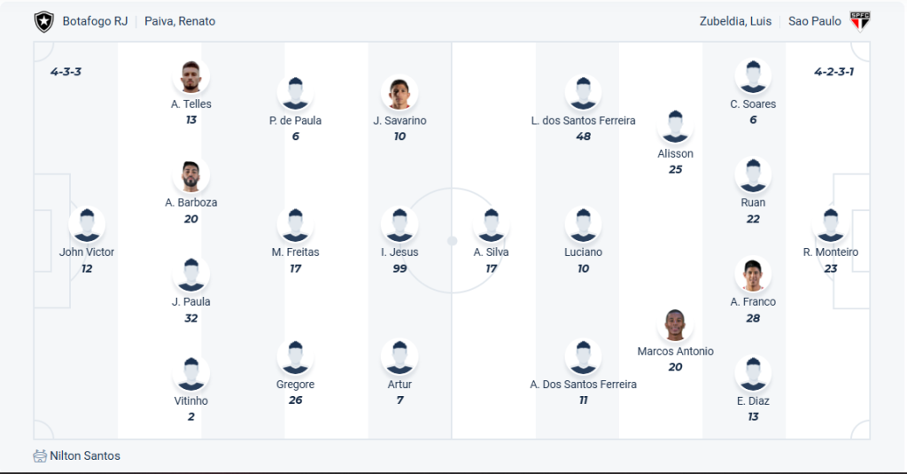 Sao Paulo đứng thứ 6 mùa trước, họ đã không còn là đội cạnh tranh chức vô địch như nhiều năm trước nữa. Mùa bóng này đội bóng của HLV Luis Zubeldía muốn làm tốt nhưng họ khởi đầu mùa này vẫn không tốt chút nào. Vậy nên muốn có một thứ hạng cao thì các cầu thủ Sao Paulo cần giành chiến thắng ở vòng đấu thứ tư nhưng họ lại phải làm khách trên sân của nhà đương kim vô địch Botafogo nên xem ra cơ hội có điểm là không cao. Nhiều khả năng Sao Paulo sẽ không thể có diểm trận này.