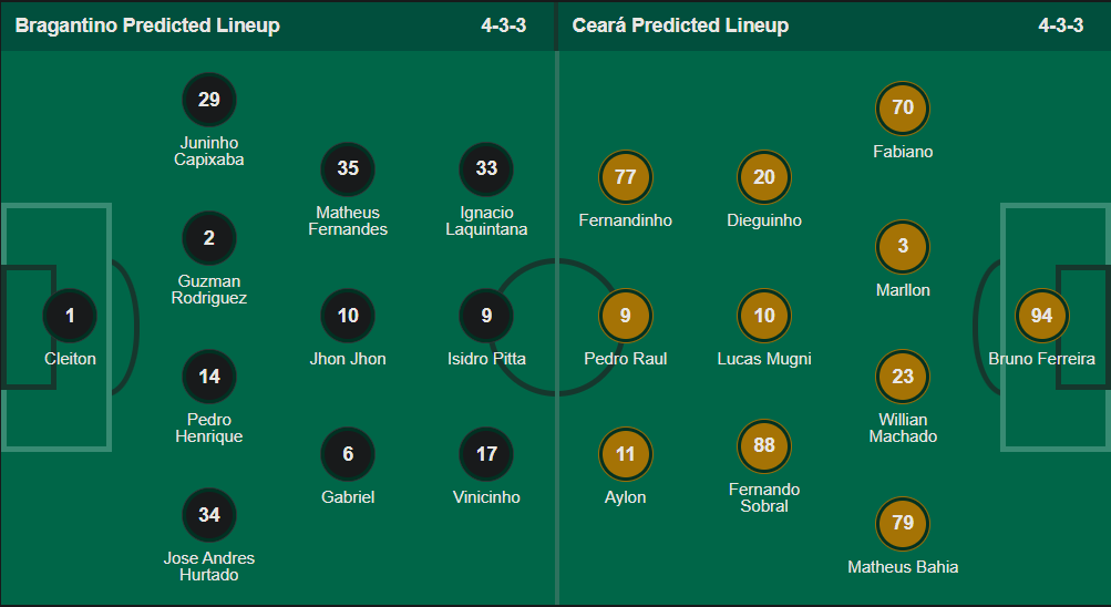 Bragantino đứng thứ 16 mùa giải trước và đứng thứ 3 tại bang Sao Paulo, thành tích không đến nỗi tệ của đội bóng này. Bước vào mùa giải 2025, thầy trò HLV Fernando Seabra muốn làm tốt hơn ở giải vô địch quốc gia nên cần đạt kết quả tốt trước các đối thủ được đánh giá yếu hơn. Vậy nên trong trận đấu ra quân họ cần một chiến thắng trước Ceara để khởi đầu mùa giải một cách mạnh mẽ, nhiều khả năng lợi thế sân nhà và đội hình nhỉnh hơn sẽ giúp Bragantino có được 3 điểm đầu tiên của mùa giải.