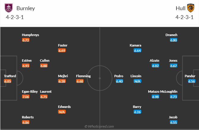Burnley là đội phải xuống hạng mùa giải trước tại Premier League, họ đặt mục tiêu thăng hạng luôn mùa giải này. Với mục tiêu đó thì vị trí thứ 3 hiện tại là chưa đảm bảo, đội bóng của HLV Scott Parker cần chơi tốt hơn mới có thể chen chân vào nhóm 2 đội đội đứng đầu. Điều khiến Burnley không thể có vị trí cao hơn là họ đề hòa quá nhiều khi đội bóng này đã hòa đến 13 trận và hòa 3/6 vòng gần nhất. Chính vì vậy 3 điểm là điều duy nhất các cầu thủ Burnley hướng đến khi tiếp đón Hull trên sân nhà. Trước đối thủ yếu hơn thì nhiều khả năng đội bóng chủ nhà sẽ có được điều mình cần.