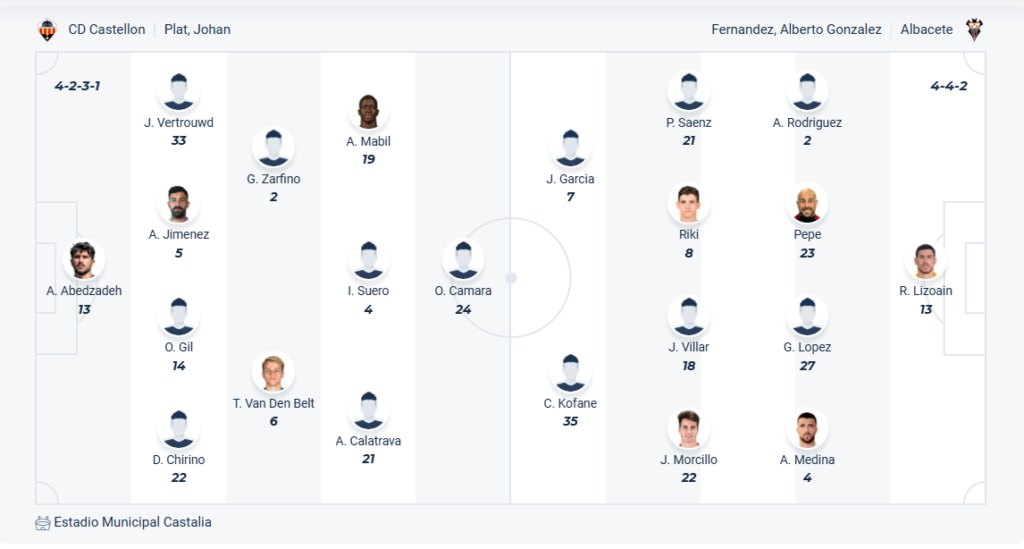 Castellon đang đứng thứ 17 trên bảng xếp hạng, so với một đội mới thăng hạng thì đây không phải vị trí quá tệ bởi vị trí của họ sẽ trụ hạng thành công. Điều các cầu thủ của HLV Johan Plat cần làm trong phần còn lại của mùa giải là chơi đủ tốt để giữ vị trí hiện tại. Sau chuỗi 4 trận không thắng thì Castellon cần một kết quả tích cực để không tụt xuống vị trí thấp hơn, họ đặt mục tiêu giành chiến thắng khi tiếp đón Albacete trên sân nhà. Tuy nhiên trước đối thu đang có phong độ rất tốt thì xem ra mục tiêu đó sẽ không thành hiện thực.