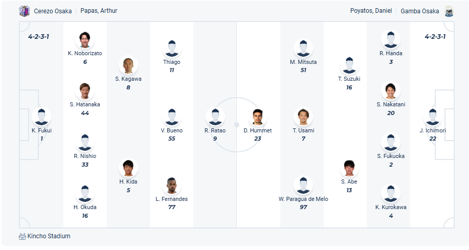 Cerezo Osaka chỉ đứng thứ 9 mùa giải trước, rõ ràng họ không còn là đội bóng mạnh hàng đầu của Nhật Bản. Mùa bóng này đội bóng của HLV Arthur Papas cũng đang đứng thứ 9, cho thấy họ không có gì tiến bộ cả. Các cầu thủ Cerezo Osaka đang chơi tốt thời gian gần đây (thắng 3, hòa 2 ở 5 vòng gần nhất) và nếu tiếp tục chơi như vậy thì họ sẽ có vị trí tốt hơn trên bảng xếp hạng, họ hướng đến một chiến thắng nữa trước đội bóng cùng thành phố Gamba Osaka ở vòng 23 này. Đối thủ đang không có phong độ tốt nên khả năng đội bóng chủ nhà sẽ có được điều mình cần.