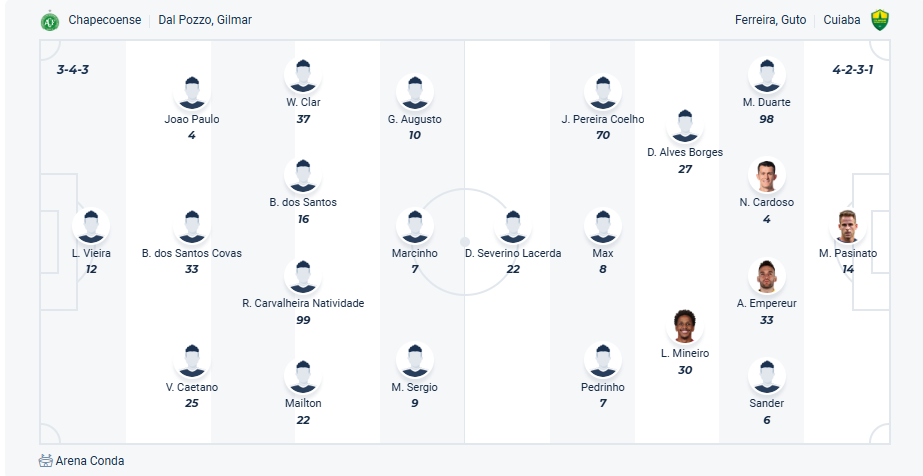 Chapecoense chỉ đứng thứ 15 mùa trước, vị trí trong nhóm cuối bảng thể hiện thực lực hạn chế của đội bóng này. Bước vào mùa giải năm nay các cầu thủ của HLV Gilmar Dal Pozzo đặt mục tiêu làm tốt hơn, họ đã khởi đầu mùa giải không đến nỗi nào khi đang đứng thứ 9 trên bảng xếp hạng với 3 chiến thắng trong 6 vòng gần nhất. Chapecoense muốn có thêm những trận đấu có kết quả tốt để cải thiện thứ hạng của mình. Cuiaba không phải đối thủ mạnh và cũng đang không có phong độ tốt nên chiến thắng không phải điều gì đó khó thực hiện với Chapecoense, nhiều khả năng đội chủ nhà sẽ đạt được mục đích.