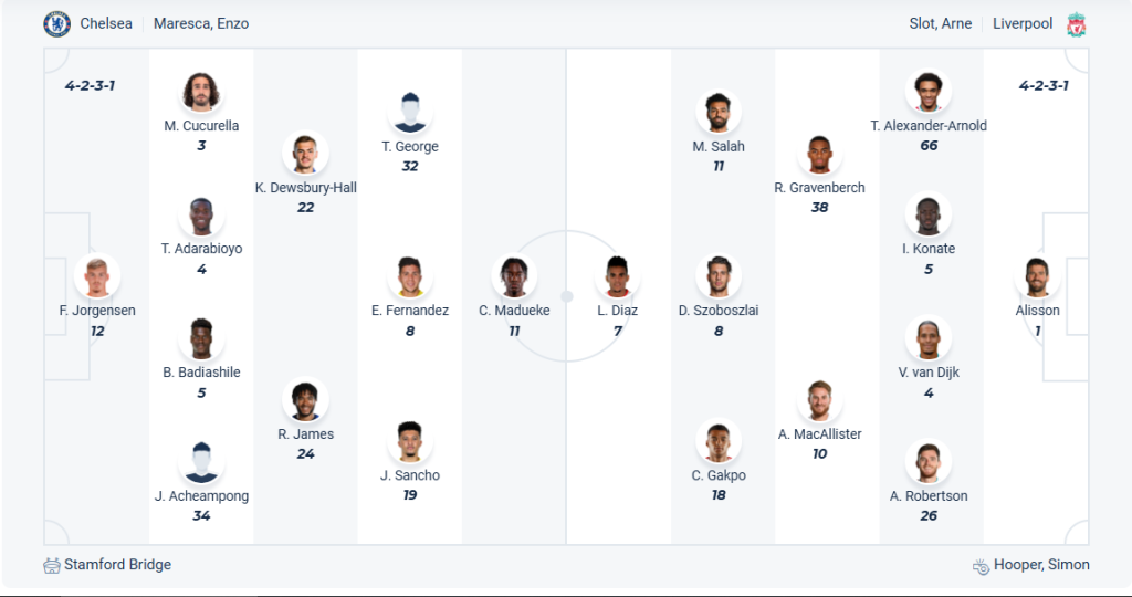 Chelsea đặt mục tiêu dự Champions League mùa tới, họ đang đứng thứ 5 trên bảng xếp hạng, vị trí vừa đủ để có vé dự Champions League. Tuy nhiên họ bằng điểm đội đứng thứ 6 và chỉ hơn đội đứng thứ 7 có 3 điểm nên nguy cơ mất vị trí hiện tại là rất cao nếu không thể giành kết quả tốt trong các trận đấu của mình. Chính vì vậy đội bóng của HLV Enzo Maresca cần chiến thắng ở vòng đấu thứ 35 này, tuy nhiên trước đối thủ rất mạnh là Liverpool thì xem ra cơ hội có điểm là không cao. Nhiều khả năng Chelsea sẽ để thua trận này.