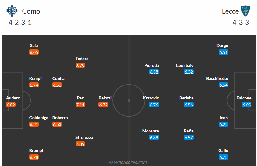 Como mới thăng hạng mùa giải này sau khi đứng thứ 2 tại Serie B mùa giải trước, rõ ràng đội bóng của HLV Cesc Fàbregas không có thực lực tốt nên chỉ đặt mục tiêu trụ hạng tại Serie A. Với mục tiêu đó thì vị trí thứ 16 như hiện tại là hoàn toàn chấp nhận được, tuy nhiên họ chỉ đang hơn nhóm xuống hạng 1 điểm nên có thể rơi xuống khu vực nguy hiểm bất cứ lúc nào. Các cầu thủ Como cần một kết quả tốt ở vòng đấu thứ 18 này và họ đặt mục tiêu giành chiến thắng trước Lecce, tuy nhiên trước đối thủ mà họ không thể thắng 6 lần gặp nhau gần nhất thì nhiều khả năng trận đấu tới cũng sẽ không ngoại lệ.