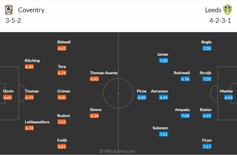 Leeds quyết tâm giành vé thăng hạng mùa giải này, họ đang đứng đầu bảng với 2 điểm nhiều hơn đội đứng thứ 2 và 5 điểm nhiều hơn đội đứng thứ 3. Cửa giành vé lên hạng trực tiếp với đội bóng này là rất sáng nhưng mọi thứ vẫn có thể xảy ra trong phần còn lại của mùa giải nên các cầu thủ Leeds cần chơi tập trung trong từng trận đấu của mình. Họ hướng đến một chiến thắng nữa khi đến làm khách trên sân của Coventry ở vòng đấu thứ 31 này, đây không phải trận đấu dễ dàng bởi đội chủ nhà đang có phong độ cao. Tuy nhiên Leeds có đội hình mạnh hơn và cũng đang chơi tốt nên khả năng họ sẽ biết cách ra về với 3 điểm trọn vẹn.