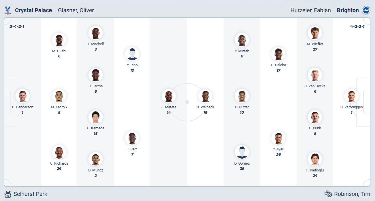 Crystal Palace đã tụt xuống vị trí thứ 9 trên bảng xếp hạng, chuỗi 3 trận không thắng đã khiến họ tụt xuống rất sâu và nhờ chiến thắng vòng đấu trước thì đội bóng của HLV Oliver Glasner mới có được vị trí như hiện tại. Rõ ràng các cầu thủ Crystal Palace muốn tiếp tục có chiến thắng để cải thiện thứ hạng của mình. Thêm chiến thắng tại Conference League giúp họ thắng cả 3 trận gần đây, điều này càng giúp đội bóng thủ đô London tự tin hơn và nhiều khả năng Crystal Palace sẽ tiếp tục có thêm một trận đấu tốt nữa để giành chiến thắng trước Brighton.
