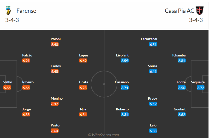 Casa Pia đứng thứ 9 mùa trước, vị trí cao hơn 1 chút so với Farense. Nhưng mùa này không như đối thủ, đội bóng của HLV João Pereira chơi tốt hơn và đang có vị trí thứ 7. Tuy nhiên phong độ của đội bóng này thời gian gần đây cũng không hề tốt khi chỉ thắng 2/6 vòng đấu gần nhất, chiến thắng ở vòng đấu trước giúp các cầu thủ Casa Pia tự tin hơn trong chặng đường sắp tới để có thể cải thiện thứ hạng của mình. Họ muốn tiếp tục có chiến thắng ở vòng 28 này và chỉ phải gặp đội bóng đứng thứ 17 Farense là cơ hội tốt để có thêm 3 điểm nữa, nhiều khả năng Casa Pia sẽ chơi đủ tốt để đạt được mục đích.