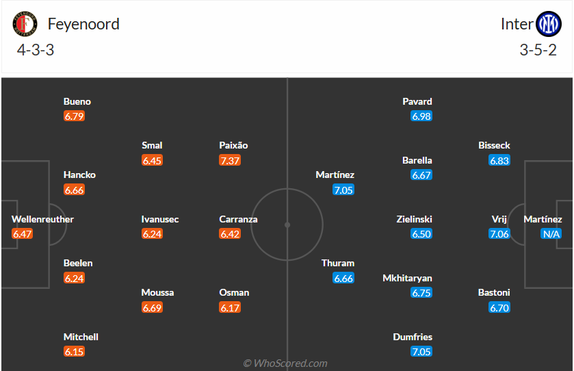 Nhận định soi kèo Feyenoord vs Inter lúc 00h45 ngày 6/3/2025