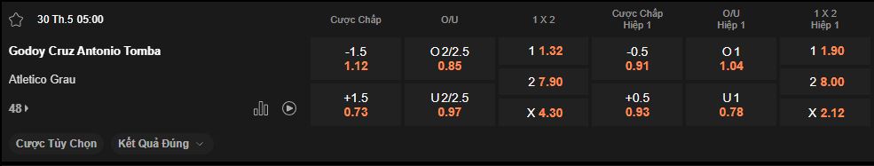 Soi kèo tài xỉu Godoy Cruz vs Atletico Grau: 0.94*2/2.5*0.96