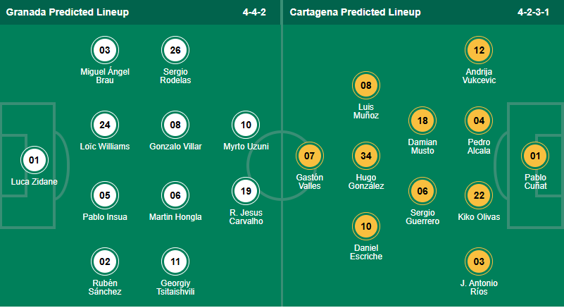 Cartagena đứng thứ 14 mùa giải trước, mùa giải này họ đang thể hiện một bộ mặt kém cỏi hơn nhiều khi liên tục thua trận và đang đứng thứ 21 trên bảng xếp hạng. Nếu không cẩn thận thì nguy cơ xuống hạng rất rõ ràng với thầy trò HLV Jandro Castro và họ cần chơi tốt hơn trong các trận đấu sắp tới, các cầu thủ Cartagena muốn có điểm ở vòng đấu thứ 20 này nhưng họ lại phải đến làm khách trên sân của đội bóng mạnh hơn như Granada thì cơ hội đạt được mục đích không cao. Nhiều khả năng Cartagena sẽ phải nhận thêm một trận thua nữa.