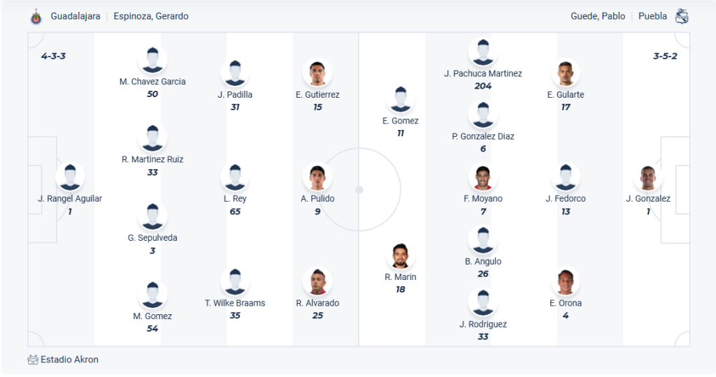 Guadalajara đang đứng thứ 12 trên bảng xếp hạng, họ tụt xuống vị trí này sau chuỗi 5 trận liên tiếp không thắng vừa qua. So với vị trí thứ 9 màu trước thì rõ ràng chuỗi trận không tốt vừa qua khiến thầy trò HLV Gerardo Espinoza đang không làm tốt nhiệm vụ của mình. Họ cần chấm dứt ngay lập tức chuỗi trận kém cỏi này bằng một chiến thắng và Guadalajara có cơ hội rất tốt để làm điều này khi đối thủ ở vòng 16 chỉ là đội bóng yếu Puebla. Nhiều khả năng đội bóng chủ nhà sẽ có được chiến thắng trận này bởi đội khách còn có phong độ tệ hại hơn.