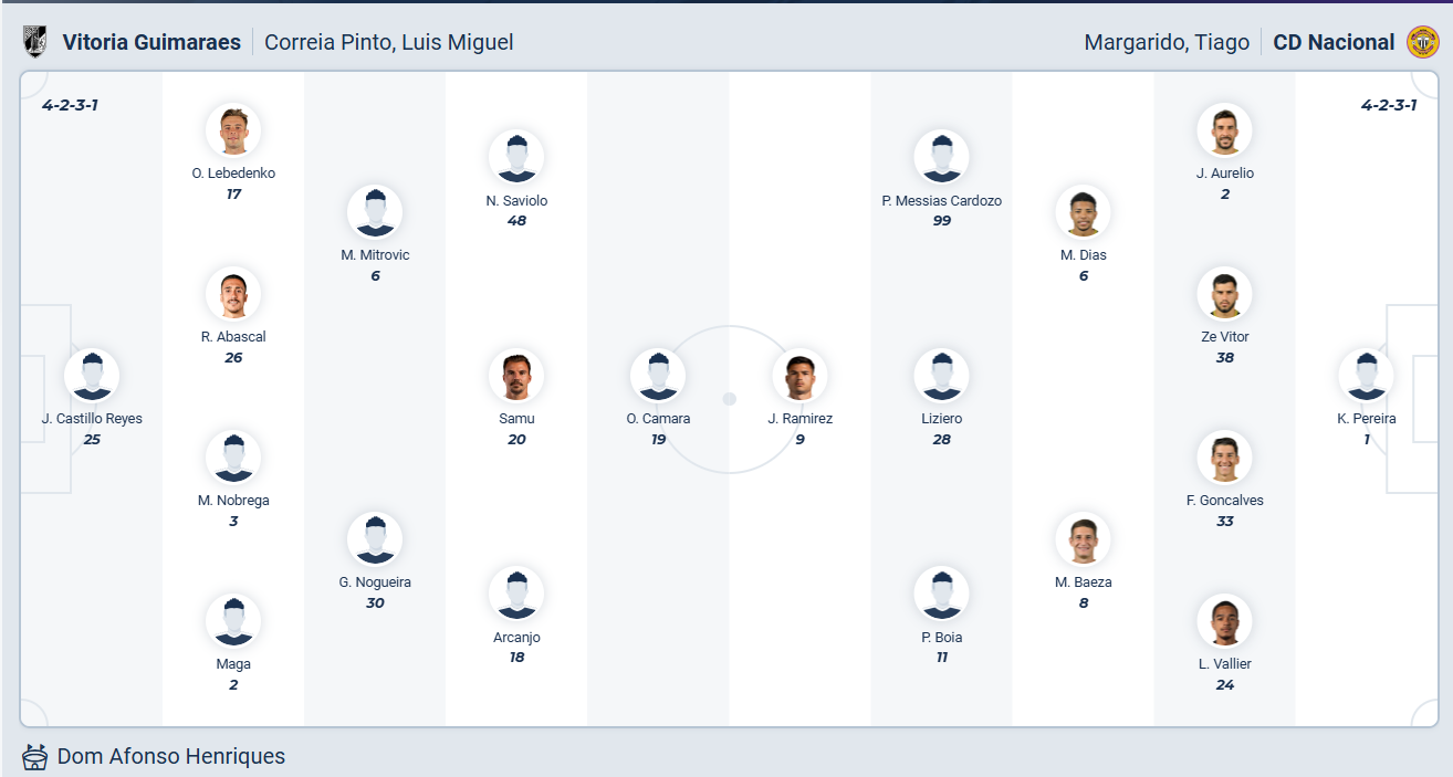 Nacional chỉ đứng thứ 14 mùa giải trước, vị trí cho thấy họ không phải đội bóng mạnh. So với vị trí đó thì việc đang đứng thứ 13 ở thời điểm hiện tại là hoàn toàn chấp nhận được nhưng thầy trò HLV Tiago Margarido chỉ thắng 1/5 vòng gần nhất nên họ cần chơi tốt hơn nếu muốn cải thiện thứ hạng. Các cầu thủ Nacional muốn có một chiến thắng ở vòng đấu thứ 17 này nhưng đến làm khách trên sân Guimaraes không phải trận đấu dễ dàng, nhiều khả năng Nacional sẽ không thể có điểm ra về.