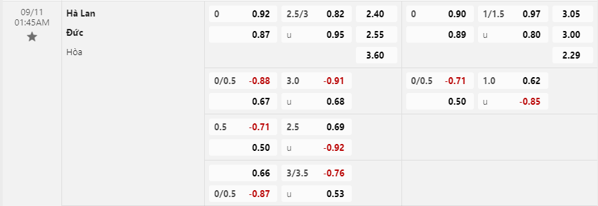 Soi kèo châu Á Hà Lan vs Đức