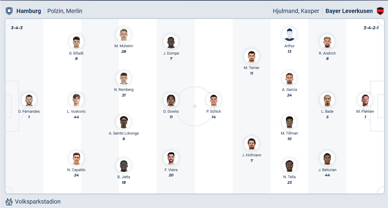 Hamburg mới trở lại Bundesliga mùa này sau khoảng thời gian phải đá ở Bundesliga 2, đương nhiên mục tiêu của thầy trò HLV Merlin Polzin sẽ chỉ là trụ hạng. Với mục tiêu đó thì việc đang đứng thứ 13 ở thời điểm hiện tại là rất ổn. Tuy nhiên khoảng cách với nhóm xuống hạng là không nhiều nên các cầu thủ Hamburg cần chơi tốt trong các trận đấu sắp tới để sớm đủ điểm trụ hạng. Nhưng ở vòng 16 này đối thủ của họ là Leverkusen, đội bóng được đánh giá mạnh hơn khá nhiều nên cơ hội có điểm không cao. Nhiều khả năng Hamburg sẽ để thua trận này.