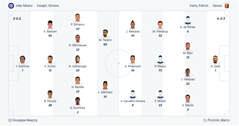 Inter đã tụt xuống vị trí thứ 2 trên bảng xếp hạng sau chuỗi trân không ổn định gần đây, họ chỉ thắng 1/4 vòng đấu gần nhất. Rõ ràng đây là chuỗi thành tích đáng thất vọng của thầy trò HLV Simone Inzaghi và không còn cách nào khác ngoài giành chiến thắng ở cả trận sắp tới để nuôi hy vọng giành chức vô địch vào cuối mùa. Vậy nên khi đá với Genoa ở vòng 26 thì 3 điểm là điều bắt buộc mà các cầu thủ Inter phải có, trước đối thủ yếu hơn nhiều thì khả năng đội bóng chủ nhà sẽ không gặp nhiều khó khăn để giành chiến thắng.