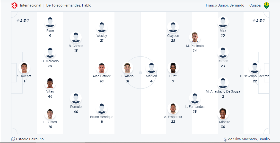 Internacional đang đứng thứ 8 trên bảng xếp hạng, vị trí tương đương với những gì họ có được mùa giải trước. Sau chuỗi trận không tốt thì thời gian gần đây đội bóng của HLV Roger Machado đã chơi tốt hơn rất nhiều khi thắng 3, hòa 1 trong 4 vòng đấu gần nhất. Các cầu thủ Internacional muốn có thêm một trận đáu tốt nữa để cải thiện thứ hạng của mình, chỉ phải đối đầu với Cuiaba là cơ hội tốt để đội bóng chủ nhà giành thêm một chiến thắng nữa. Nhiều khả năng Internacional sẽ tiếp tục chơi tốt và có 3 điểm trận này.