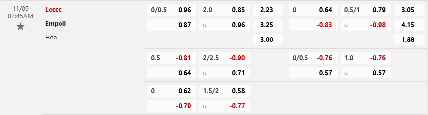Soi kèo tài xỉu Lecce vs Empoli: 00.90*2.25*0.71