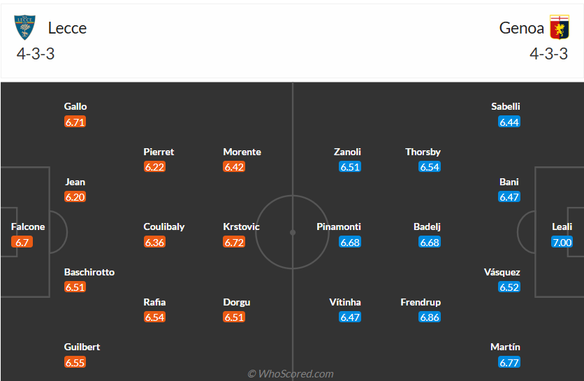 Genoa được đánh giá cao hơn so với Lecce, mùa trước đội bóng này cán đích ở vị trí thứ 11. Mùa bóng năm này đội bóng của HLV Patrick Vieira không chơi tốt như trước nhưng vị trí thứ 13 ở thời điẻm này không phải tệ. Sau chiến thắng ở vòng đấu trước và chấm dứt chuỗi trận đáng quên, các cầu thủ Genoa muốn có thêm một kết quả tốt nữa để cải thiện thứ hạng của mình. Đến làm khách trên sân của Lecce không phải trận đấu quá khó khăn, nếu chơi đúng với phong độ thì Genoa sẽ có 3 điểm mang về.