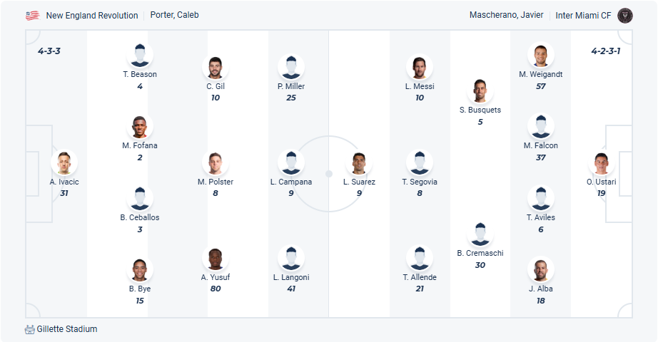 New England đang đứng thứ 21 trên bảng xếp hạng, họ không phải đội bóng mạnh của MLS và vị trí này còn tốt hơn so với những gì họ làm được mùa trước (thứ 26). Tuy nhiên phong độ thời gian gần đây của thầy trò HLV Caleb Porter rất tệ (hòa 1, thua 3 trong 4 trận gần nhất) nên họ hoàn toàn có thể tụt xuống vị trí như mùa giải trước nếu không chơi tốt hơn. Rõ ràng các cầu thủ New England rất muốn giành chiến thắng ở trận đấu sắp tới nhưng trước đối thủ đang có phong độ tốt như Inter Miami thì xem ra cơ hội có điểm không cao.