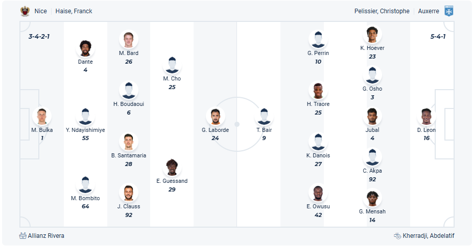 Nice đang đứng thứ 3 trên bảng xếp hạng, vị trí sẽ được dự Champions League mùa tới. Đây đang là thành tích rất tiến bộ của thầy trò HLV Franck Haise bởi mùa trước họ chỉ đứng thứ 5, trong bối cảnh các đội phía sau đang bám rất sát thì Nice cần hạn chế tối đa việc mất điểm để giữ vị trí của mình. Chính vì vậy khi tiếp đón đội bóng yếu như Auxerre thì 3 điểm là điều duy nhất mà các cầu thủ Nice hướng đến, nhất là sau khi họ để thua ở vòng đấu trước. Nhiều khả năng chủ nhà Nice sẽ chơi tốt trận này và có được điều mình cần.