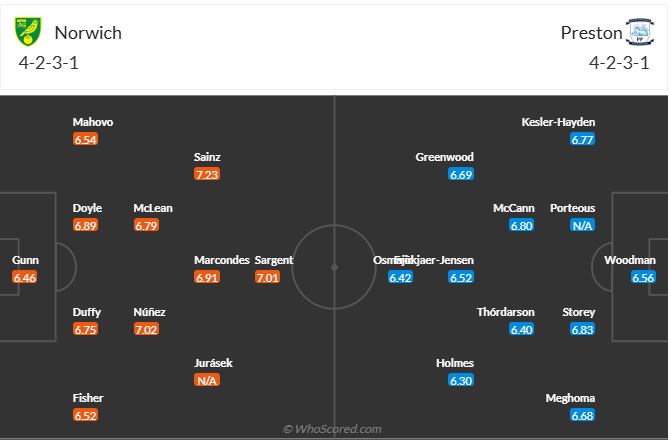 Norwich đang đứng thứ 8 trên bảng xếp hạng, họ cần lọt vào top 6 để nuôi hy vọng thăng hạng. Muốn vậy đội bóng này cần chơi ổn định hơn chứ không thể liên tục mất điểm như thời gian qua (chỉ thắng 3 trong 6 vòng gần nhất). Sau khi bị đối phương cầm hòa ở vòng đấu trước các cầu thủ Norwich cần một chiến thắng để nuôi hy vọng cải thiện thứ hạng của mình. Trước đối thủ Preston không quá mạnh thì cơ hội giành 3 điểm của Norwich là không hề thấp, nhiều khả năng đội bóng chủ nhà sẽ có được điều mình cần.