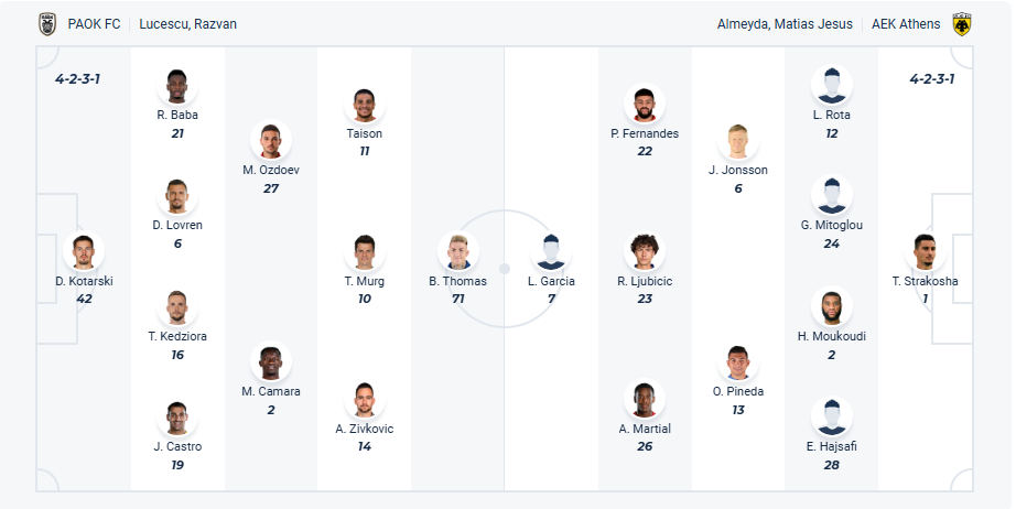 AEK Athens cũng là đội bóng mạnh và giàu truyền thống của Hy Lạp, họ đứng thứ 2 mùa giải trước chỉ sau PAOK và đang đứng thứ 3 mùa giải này. Rõ ràng thực lực của họ và PAOK được đánh giá rất cân bằng, phong độ của thầy trò HLV Matías Almeyda đang rất ổn với các chiến thắng liên tiếp gần đây và họ muốn duy trì chuỗi trận bất bại này khi đến làm khách trên sân của PAOK trong trận tứ kết lượt về Cup Quốc gia. Tuy nhiên trận đấu sân khách này được đánh giá rất khó khăn và nhiều khả năng chuỗi bất bại đó của AEK Athens sẽ phải dừng lại.