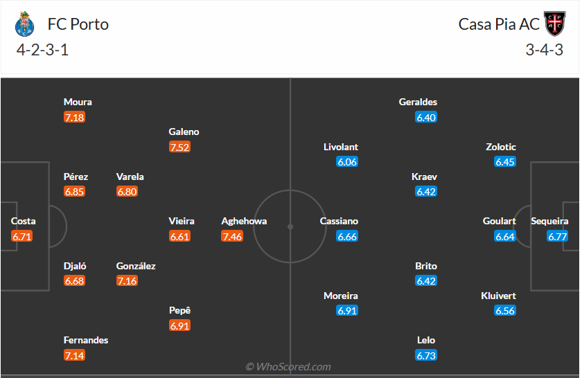 Porto chơi không đến nỗi nào khi thắng 9, thua 2 sau 11 vòng đấu. Tuy nhiên thành tích này so với 11 trận toàn thắng của Sporting vẫn kém hơn rất nhiều, đặt biệt trận thua bất ngờ ở vòng trước đã khiến Porto kém đối thủ 6 điểm. Không còn cách nào khác, Porto cần phải thắng trong các trận đấu của mình để bám đuổi đối thủ cạnh tranh nên khi đón tiếp Casa Pia trên sân nhà thì 3 điểm là điều duy nhất các cầu thu Porto hướng đến. Nhiều khả năng đội bóng chủ nhà sẽ thể hiện được đẳng cấp của mình và giành chiến thắng trận này.