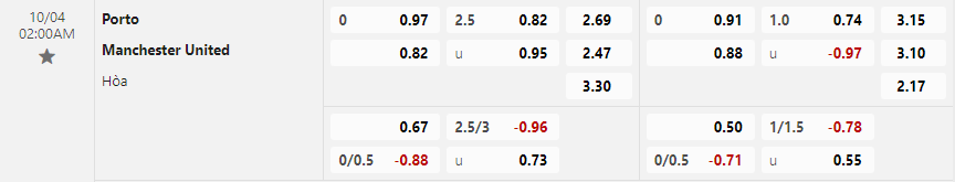 Soi kèo châu Á FC Porto vs Manchester United