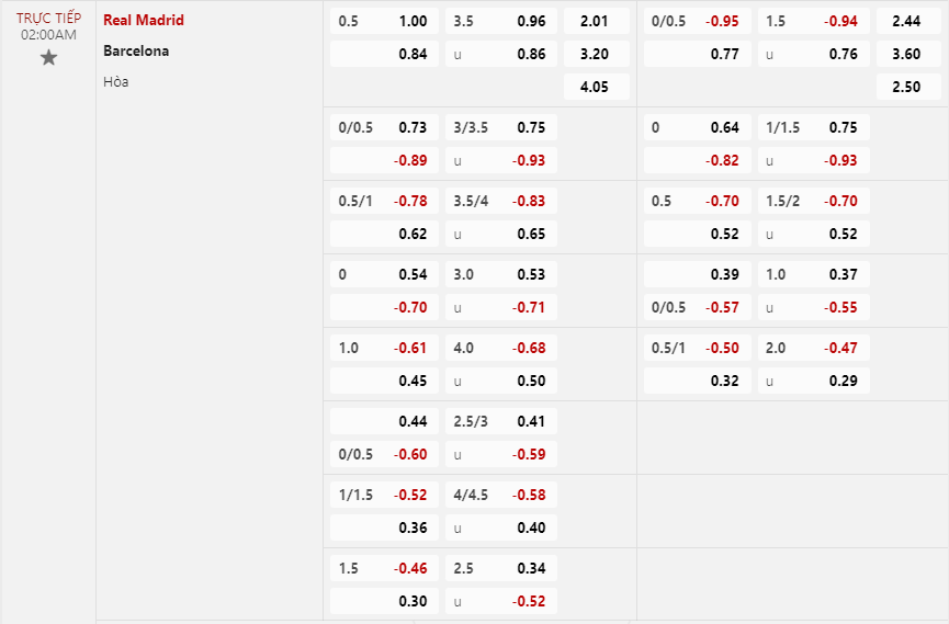 Soi kèo châu Á Real Madrid vs Barcelona