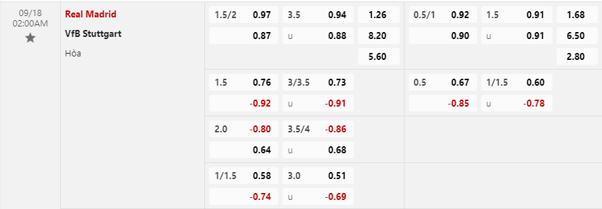 Soi kèo châu Á Real Madrid vs VfB Stuttgart