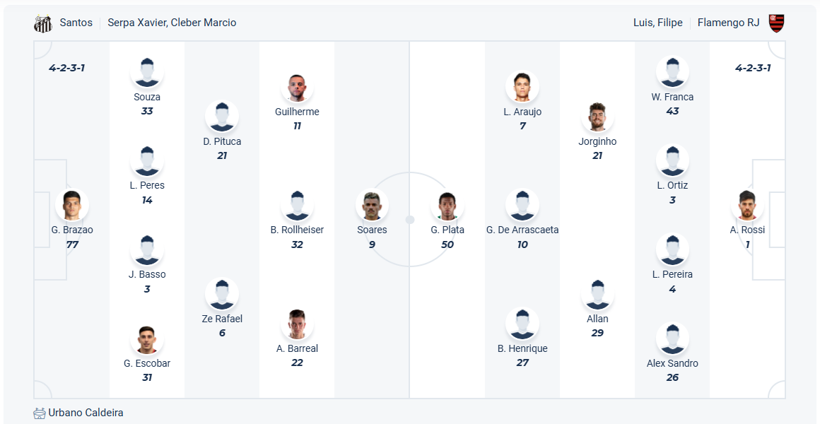 Santos bị xuống hạng cách đây vài mùa và mới trở lại hạng đấu cao nhất của Brazil mùa bóng này sau khi vô địch giải hạng dưới. Rõ ràng họ không còn đội hình mạnh như xưa và ở mùa này đội bóng của HLV Cleber Xavier cần trụ hạng trước khi nghĩ đến những điều xa xôi hơn. Thực tế cho thấy mục tiêu đó không hề dễ dàng khi Santos đang đứng thứ 16 trên bảng xếp hạng, hơn nhóm xuống hạng chỉ nhờ chỉ số phụ. Nếu không thắng ở vòng trước thì vị trí của họ còn nằm trong nhóm xuống hạng nên các cầu thủ Santos muốn tiếp tục giành một kết quả tốt ở vòng đấu này để tạo khoảng cách về điểm số với các đội đứng sau. Nhưng đối thủ của họ lại là đội bóng rất mạnh Flamengo nên xem ra cơ hội có điểm không cao.