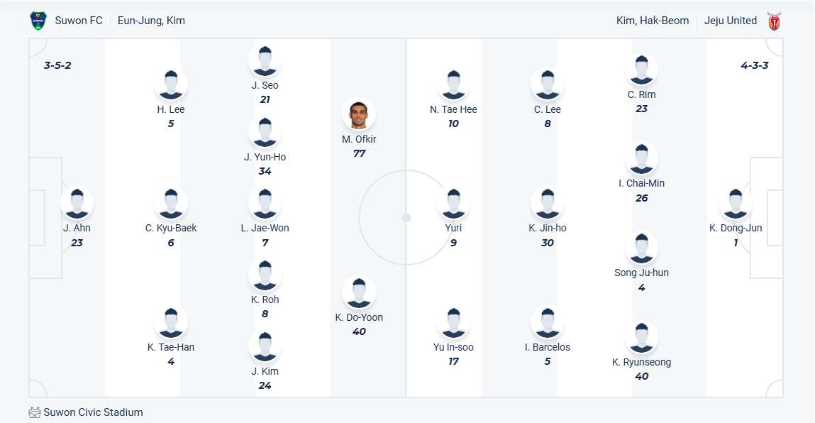 Soi kèo Hiệp 1 Suwon vs Jeju: updating