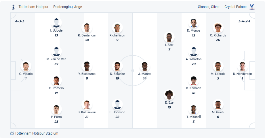 Crystal Palace đã trụ hạng từ lâu, đây luôn là mục tiêu hàng đầu của đội bóng này mỗi mùa bóng và họ vẫn luôn có được. Với vị trí thứ 12 hiện tại thì đội bóng của HLV Oliver Glasner không còn mất cứ mục tiêu nào trong phần còn lại, họ chỉ muốn đá tốt nhất có thể để hy vọng cải thiện thứ hạng. Nhưng phong độ không tốt thời quan qua với 5 vòng liên tiếp không thắng thì có thể thấy đội bóng này dường như đã an phận với thứ hạng hiện tại. Chính vì vậy chuyến đến làm khách trên sân của Tottenham nhiều khả năng sẽ là một trận thua nữa.