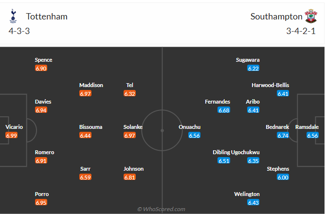 Tottenham tiếp tục trình diễn một bộ mặt bạc nhược trong các trận đấu của mình, đã 4 vòng liên tiếp họ không thể thắng với 3 thua, 1 hòa. Với một đội nhiều tham vọng như Tottenham thì rõ ràng những gì thầy trò HLV Postecoglu đang làm là rất kém cỏi, mọi hy vọng về một mùa giải đỡ tồi tệ được dồn vào Europa League nhưng họ vẫn cần thắng tại Premier League để xốc lại tinh thần các cầu thủ trước. Chỉ phải gặp một Southampton gần như chắc chắn xuống hạng là cơ hội không thể tốt hơn để Tottenham có được chiến thắng và nhiều khả năng họ sẽ đạt được mục đích.