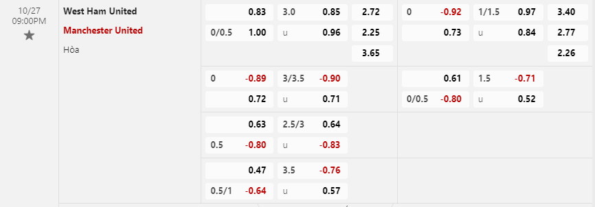 Soi kèo châu Á West Ham United vs Manchester United