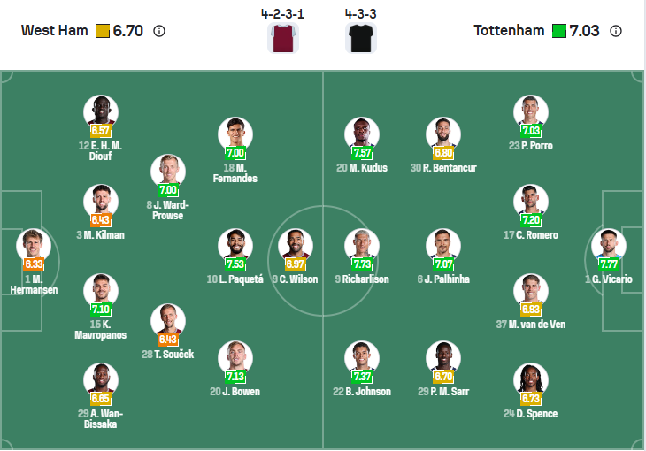 Tottenham đã chơi khởi sắc dưới thời HLV Thomas Frank, với nhiều cầu thủ được bổ sung họ đã thắng 2 trận đấu đầu tiên. Tuy nhiên Tottenham đã bất ngờ để thua trước Bournemouth ở vòng đấu trước khiến các cổ động viên chưa thể yên tâm, có vẻ họ vẫn chưa có được sự ổn định cần thiết. Tottenham muốn trở lại với mạch chiến thắng ở vòng đấu thứ tư này nhưng chuyến làm khách trên sân của West Ham chưa bao giờ dễ dàng, nhiều khả năng Tottenham sẽ chỉ có trận hòa trong trận derby London này.