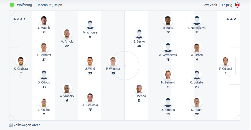 Wolfsburg đang đứng thứ 12 trên bảng xếp hạng, vị trí đúng bằng thứ hạng của đội bóng này mùa trước. Thầy trò HLV Ralph Hasenhüttl để thua cả 3 vòng đấu gần nhất và nếu không chơi tốt thì nguy cơ trôi xuống nửa dưới bảng xếp hạng là hoàn toàn có thể. Chính vì vậy Wolfsburg cần chơi tốt trong các trận còn lại của mùa giải để tối thiểu không bị tụt xuống vị trí thấp hơn. Vậy nên họ cần một chiến thắng khi tiếp Leipzig trên sân nhà ở vòng 29 này, tuy nhiên trước đối thủ đang chơi tốt dần lên thời gian gần đây thì khả năng Wolfsburg sẽ không thể có được kết quả tốt.